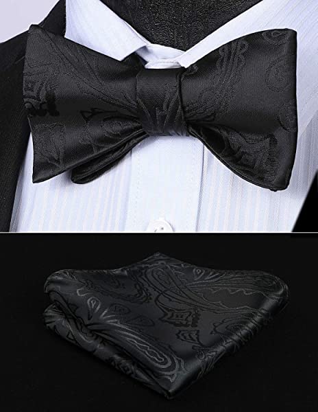■ 蝶ネクタイ メンズ 黒 無地 ペイズリー柄 手結び蝶ネクタイ チーフ セット ボウタイ 結婚式 二次会 入学式 パーティー おしゃれ ブランド プレゼント 送料無料 素材構成: ポリエステル70%、シルク 30%柄物の中でも、子供と初心者におすすめしたいの ペイズリー 蝶ネクタイです。