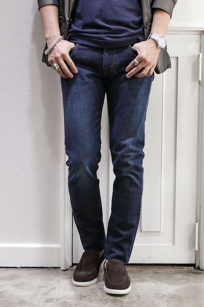 【デザインコメント】 イタリア最古のデニムブランドが美シルエットデニム 当モデルLEONARD JPは股上の浅くテーパードの効いたSLIM FITモデル。