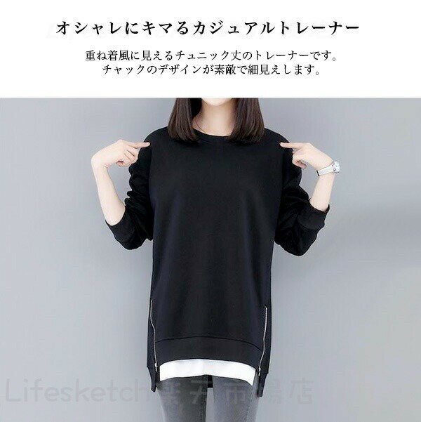 キャンペーントレーナー トップス レディース ラウンドネック カジュアル カットソー トレーナー ジップアップ デザイン おしゃれ ゆったり チュニック 長袖 秋冬 トップス レディース 1color ラウンドネック カジュアル カットソー トレーナー ジップアップ デザイン おしゃれ ゆったり チュニック 長袖 秋冬 トップス レディース(送料無料)