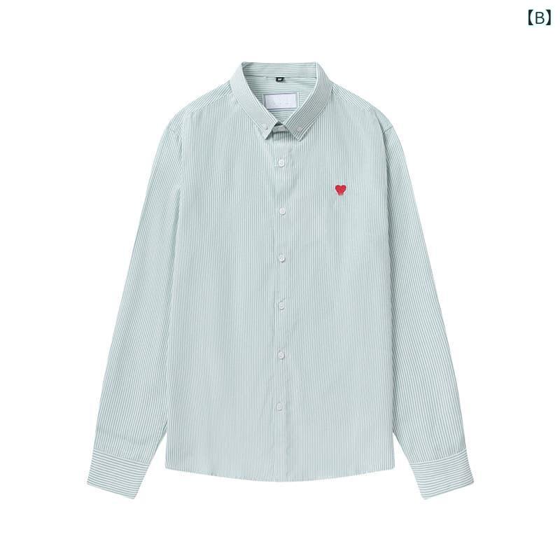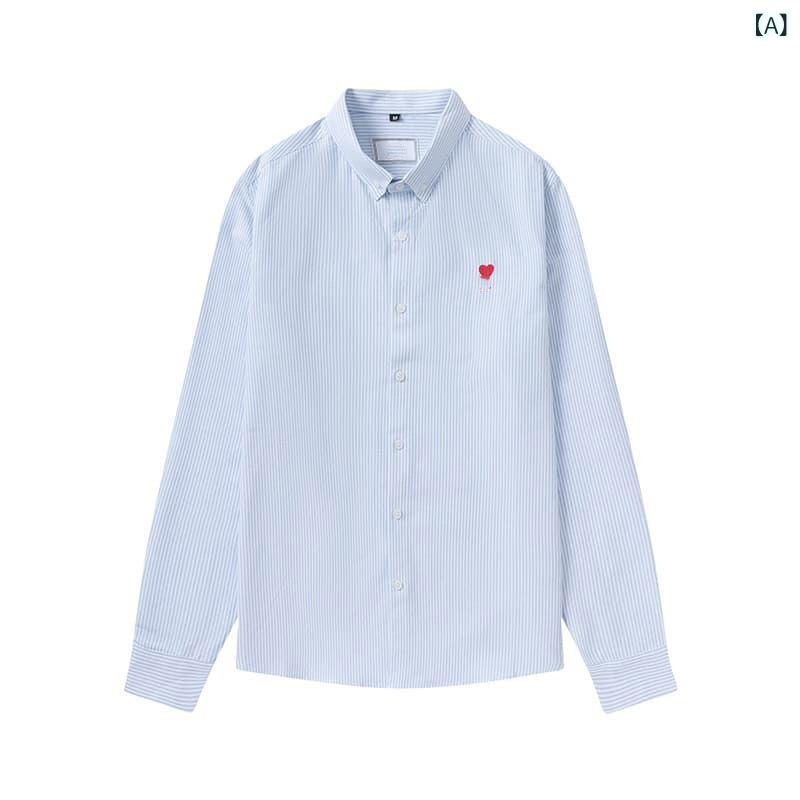 シャツ メンズ レディース 男女兼用 コットン オックスフォード 長袖 ストライプ ワンポイント 刺繍 カジュアル 普段使い ビジネス 通勤 リラックス ゆったり ブルー 青 グリーン 緑 ピンク ホワイト 白 ブラック 黒