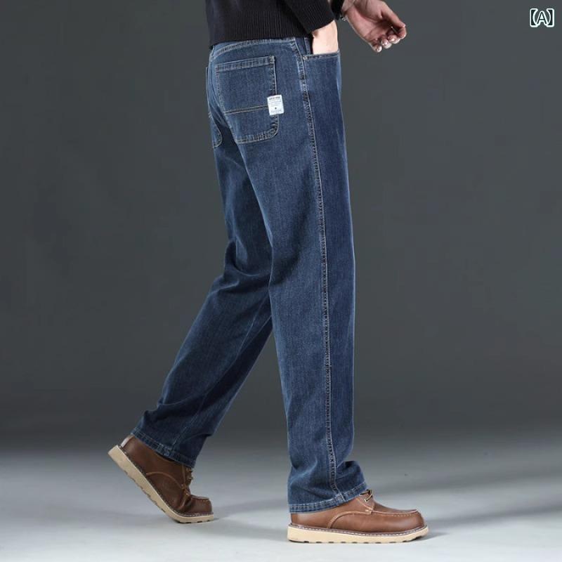 デニム メンズ ジーパン ストレート ゆったり ビジネス カジュアル ロングパンツ 男性用 ズボン 普段使い 薄手 春・スタイル: ビジネス・対象: メンズ・カテゴリ: ジーンズ・パンツタイプ: ストレート・パンツ丈: フルレングス・ウエスト: ミドルウエスト・フロント: ボタンフライ・厚さ: 薄手・素材: デニム・主な素材: 綿67%・ストレッチ: ややあり・裾: ストレート・色: ブルーグレー, ブルーブラック, ブラックグレー, ブルー, グレー, ライトブルー, スモークグレー, ダークブルー, ブラック・サイズ: 28, 29, 30, 31, 32, 33, 34, 36, 38, 40, 42・加工: ウォッシュ加工, 刺繍