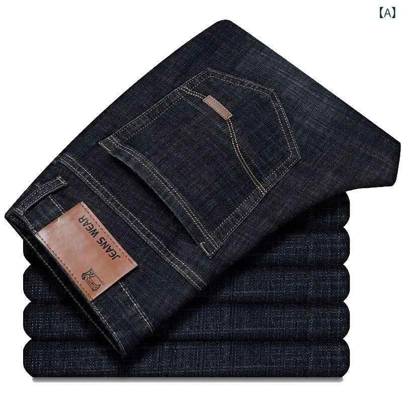 デニムパンツ メンズ 男性用 紳士 ビジネス カジュアル ストレート 春秋 薄手 ストレッチ ブラック ブルー 黒 青・カテゴリ: デニムパンツ・スタイル: ビジネス.フォーマル・対象: 35歳以上の男性・パンツの長さ: 長ズボン.ショートパンツ・フィット: ストレート・ウエスト: ミドルウエスト・前開き: ジッパー・厚さ: 薄手・素材: デニム.ポリエステル・ストレッチ: あり・裾: ストレート・サイズ: 28.29.30.31.32.33.34.36.38.40・対象年齢: 成人・対象性別: 男性・加工: 水洗い.アイロン不要