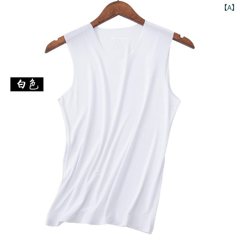 タンクトップ メンズ ポリエステル 接触冷感 ノースリーブ Vネック スポーツ インナー 白 黒 紺 グレー 幅広肩 伸縮性 通気性