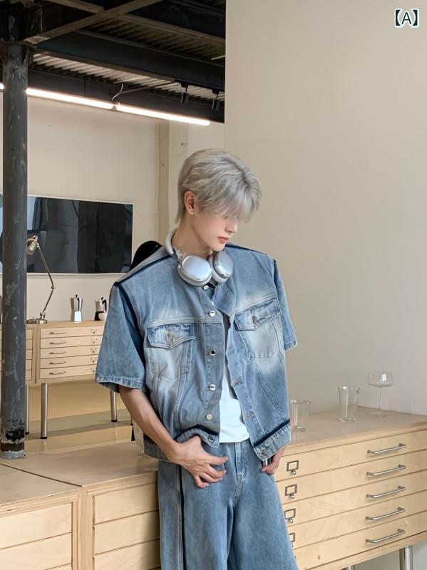 シャツ メンズ デニムシャツ 半袖 コットン 垫肩 ゆったり ワークシャツ ブルゾン トップス 男性用 ブルー・カテゴリ: シャツ・スタイル: 韓国・素材: 綿・柄: 無地・対象年齢: 成人・対象: 男性・袖丈: 半袖・カラー: ブルー・サイズ: M, L, XL, 2XL, 3XL・タイプ: カーディガン・フィット: ルーズ・ネックライン: 襟付き・・加工: 防しわ加工