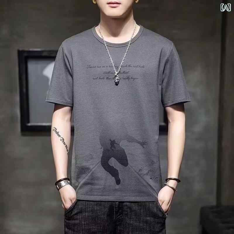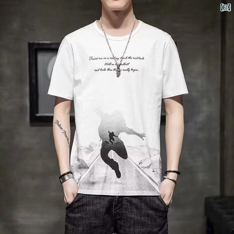 Tシャツ メンズ スリムフィット 丸首 ビッグサイズ トップス 学生風 プリント 薄手 吸湿速乾 スポーツ 普段使い
