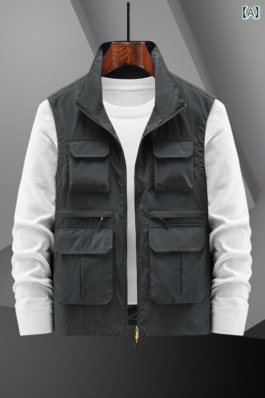 ベスト メンズ アウトドア 登山 撮影 春秋 撥水 速乾 多ポケット 大きいサイズ ゆったり グレー 黒 赤 カーキ 緑・カテゴリ: ベスト.ワークベスト・スタイル: スポーツ.カジュアル・デザイン: 無地・タイプ: ルーズ・襟の形: スタンドカラー・フロント: ジッパー・・主な生地の組成: ナイロン・生地の名称: 化学繊維混紡・裏地成分: ポリエステル・対象年齢: 成人・対象: 男性・色: グレー, ブラック, レッド, カーキ, アーミーグリーン・サイズ: M, L, XL, 2XL, 3XL, 4XL・ディテール: 多ポケット・ポケットのスタイル: パッチポケット・裾のデザイン: ストレート