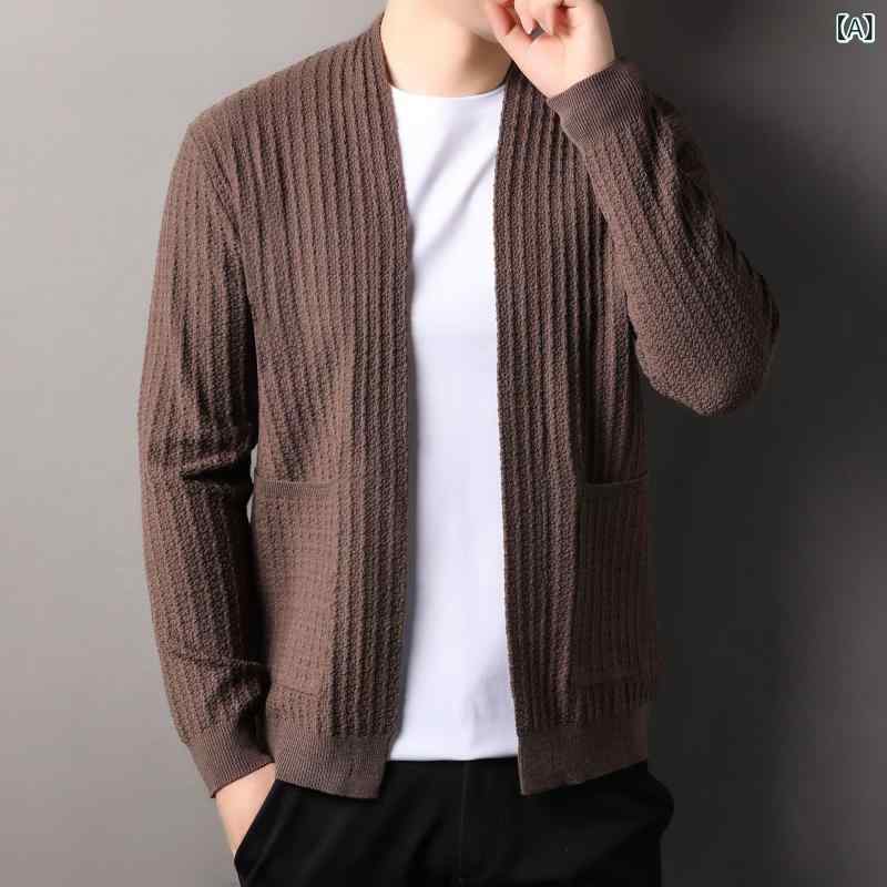 ニットカーディガン メンズ 男性用 提花柄 長袖 無地 スリムフィット 韓国 春秋 カジュアル 普段使い トップス 羽織物・カテゴリ: ニットカーディガン・スタイル: 韓国・タイプ: カーディガン・シルエット: スリム・ネックライン: ノーカラー・袖丈: 長袖・・素材: 化学繊維混紡・主な素材: アクリル・素材の割合: 48%・対象年齢: 成人・対象: メンズ・色: 茶色.黒・サイズ: M.L.XL.XXL.XXXL.XXXXL・詳細: ジャカード
