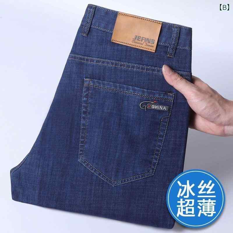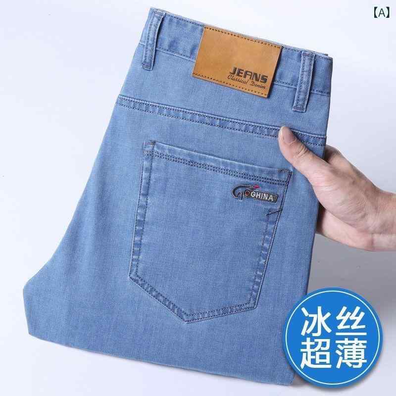 デニム メンズ パンツ 薄手 接触冷感 ジーンズ ストレート ジーパン ズボン ボトムス 伸縮性 涼しい ビジネス カジュアル 男性用 大きいサイズ 浅色 濃色 黒・商品カテゴリ: ジーンズ・スタイル: ミドルエイジ・デザイン: ストレートパンツ・加工: 刺繍・パンツ丈: フルレングス・ウエスト: ハイウエスト・フロント: ジッパーフライ・厚さ: 薄手・対象年齢: 成人・対象: 男性・素材: 綿・素材構成: 綿61.1%・シーン: カジュアル・ディテール: マルチポケット・ストレッチ: ミディアム・裾: ストレート・色: ライトブルー.ダークブルー.ブラック・サイズ: 25.26.27.28.29.30.31.32.34.36
