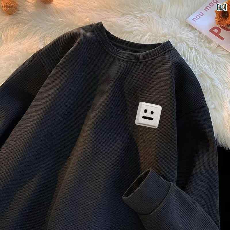 スウェット メンズ 春秋 アメリカン レトロ 長袖 Tシャツ カットソー ストリート系 ゆったり トップス 白 黒 青 グレー