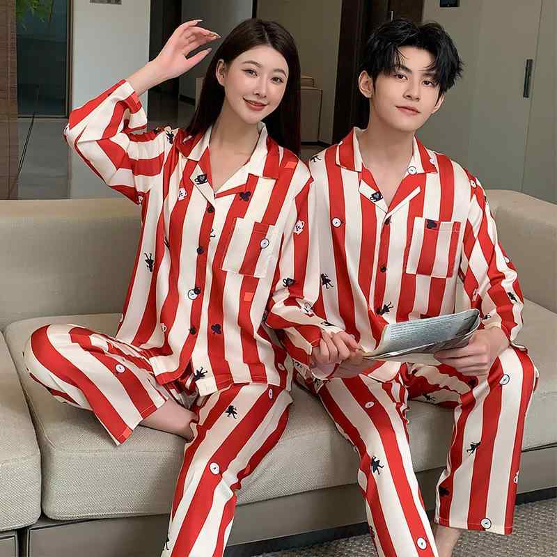 パジャマ レディース メンズ 春秋 長袖 接触冷感 セットアップ 大きいサイズ ストライプ柄 ルームウェア 部屋着 リラックス 快適 ブラック ホワイト レッド