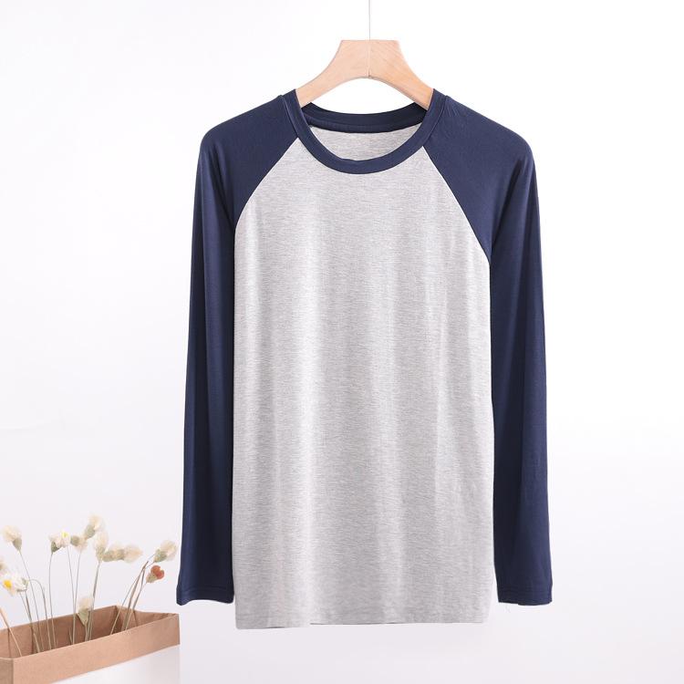 Tシャツ 男性用 再生繊維 切り替え 長袖 薄手 ラウンドネック プルオーバー 部屋着 リラックス ウェア ルームウェア 普段使い オールシーズン 快適