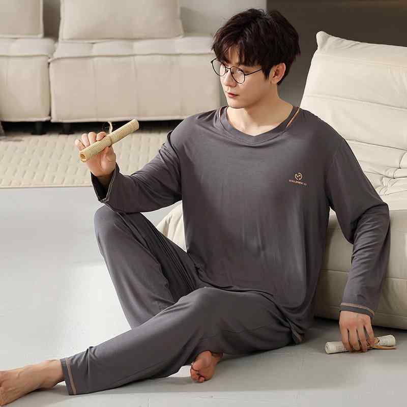 パジャマ メンズ 男性用 長袖 ルームウェア 上下セット モダール 綿 混紡 春秋 薄手 大きいサイズ ゆったり ラウンドネック 部屋着 普段使い リラックス 保温性 ポリエステル