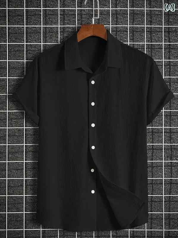 シャツ メンズ 半袖 薄手 男性用 紳士服 トップス スリムタイプ 無地 高見え カジュアル 通勤用 ブラック ホワイト系 春夏・・機能: 透气,可机洗,防皱,高弹,吸湿排汗・スタイル: 軽熟休闲・対象: 若者・タイプ: カーディガン・フィット: スリム・襟型: 襟付き・袖丈: 半袖・柄: プリント・厚さ: 薄手・主な素材: スパンデックス・主な素材の含有量: 51%-70%・シーン: カジュアル・カラー: ブラック,ホワイト,杏色・サイズ: S,M,L,XL,XXL・シーズン: 夏・製法: プリント/染色・対象年齢: 成人・対象性別: 男性・製品カテゴリ: シャツ