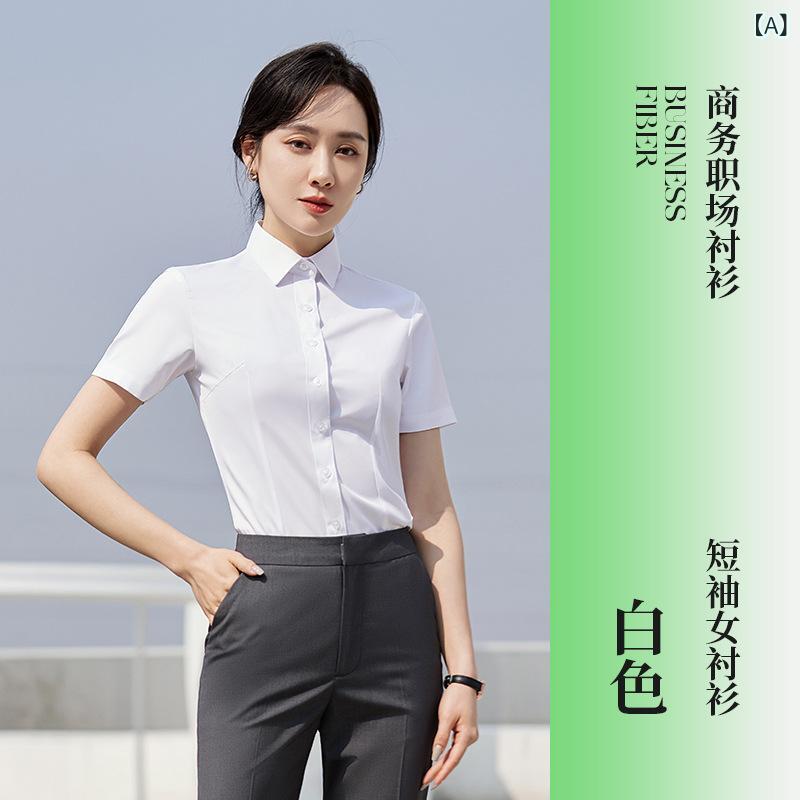 2個セットシャツ レディース 半袖 ブラウス 形態安定 事務服 オフィス ビジネス 通勤 ポリエステル ホワイト 白 S M L XL 2L 3L 4L 5L