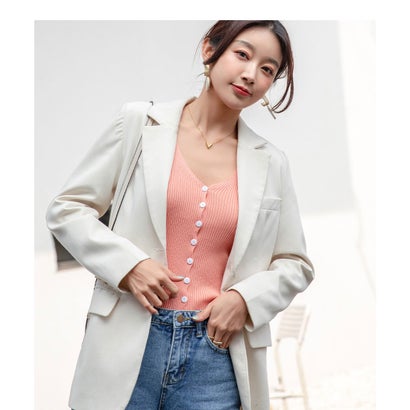 カジュアル過ぎないボタンが女性らしさをプラスしてくれ、トレンド感のあるデザインに。