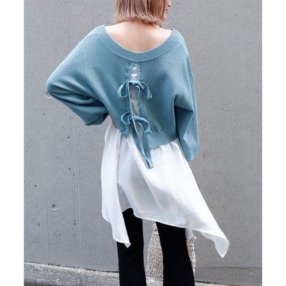 バックリボンのデザインがかわいい♪レイヤードトップスが登場!シンプルなボトムと合わせるだけでもお洒落な印象に。