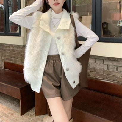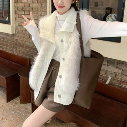 こなれ感溢れる異素材MIXふわふわファーベストが登場♪触り心地の良いフェイクファーだけでなく、ニットと組み合わせて上品カジュアルなデザインにしました。