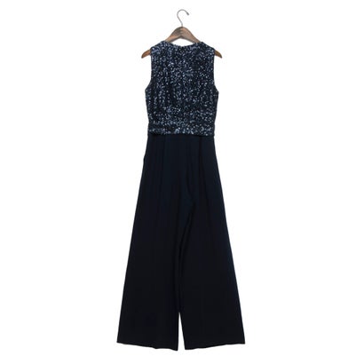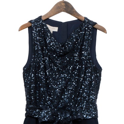 華やかなスパンコールトップスとシックなワイドパンツが魅力のオールインワン。