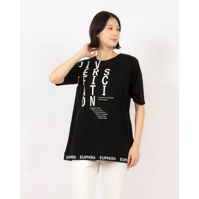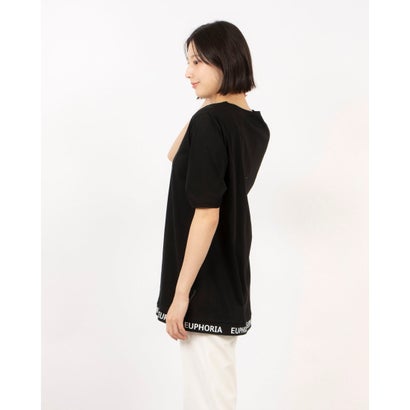 存在感のある大胆なロゴプリントが目を引く半袖チュニック。
