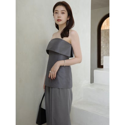 夏のスタイリングをモードに彩るシャンタン生地のベアトップス。