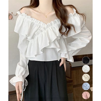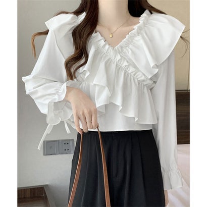 ボリュームのあるフリルが魅力のフェミニンブラウス。