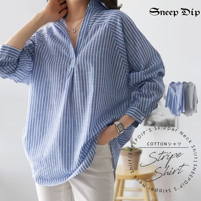 原産国韓国関連ワード タックストライプシャツ シャツ トップス チュニック 抜け感 長袖 スキッパーネック ストライプ 春夏 かわいい 韓国風 大人 カジュアル ラフ シアー シースルー 綿 コットン 柔らか 日よけ 襟 体型カバー 爽やか ミディ丈 柄シャツ レディース 軽い タック こなれr> サックス 水色 ブラック 黒 韓国ファッション シンプル ワイド ゆったり 風通しがいい リラックス ラグランスリーブ オフィスカジュアル sneepdip スニープディップ 韓国ファッション別カラーはこちら! ブルー(サックス)