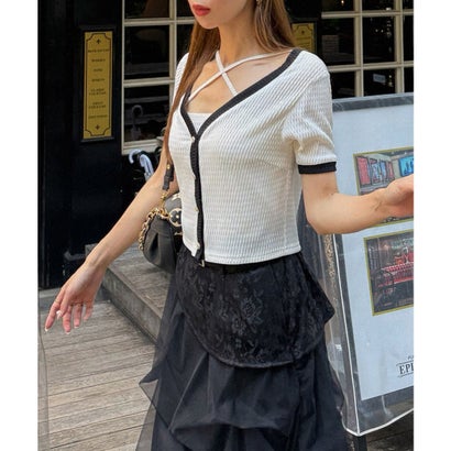 【サイズ】F:バスト(カーディガン)40cm (キャミソール)34cm|着丈(カーディガン)41cm (キャミソール)34cm|袖丈(カーディガン)17cm|肩幅(カーディガン)39cm