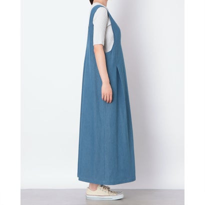 ◇身長163cm B80 W62 H83/モデル着用サイズF軽やかなデニム素材を使用したデニムフレアジャンパースカートです。
