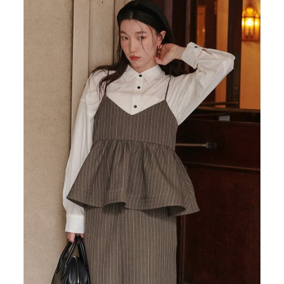 ・立体感のあるペプラムシルエットが目を引くアイテム・バックゴムで着脱しやすく心地も良い・肩紐は細く華奢見えする・ベーシックなパンツはもちろん、デニムでカジュアルダウンさせるコーデもお勧めです