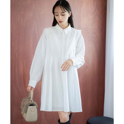 胸元のレトロなレースがさりげなく甘さを添える、Aラインのミニ丈シャツワンピース。