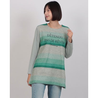 身頃は柔らかなニット風素材、袖はリブ仕様になっており、異素材の組み合わせがこなれ感をプラスします。