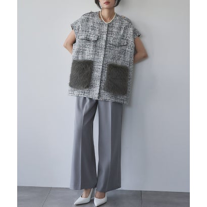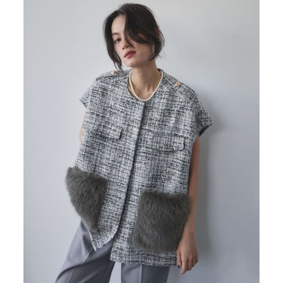ポケットにはツイードカラーに合わせた色目のファーをあしらっています。