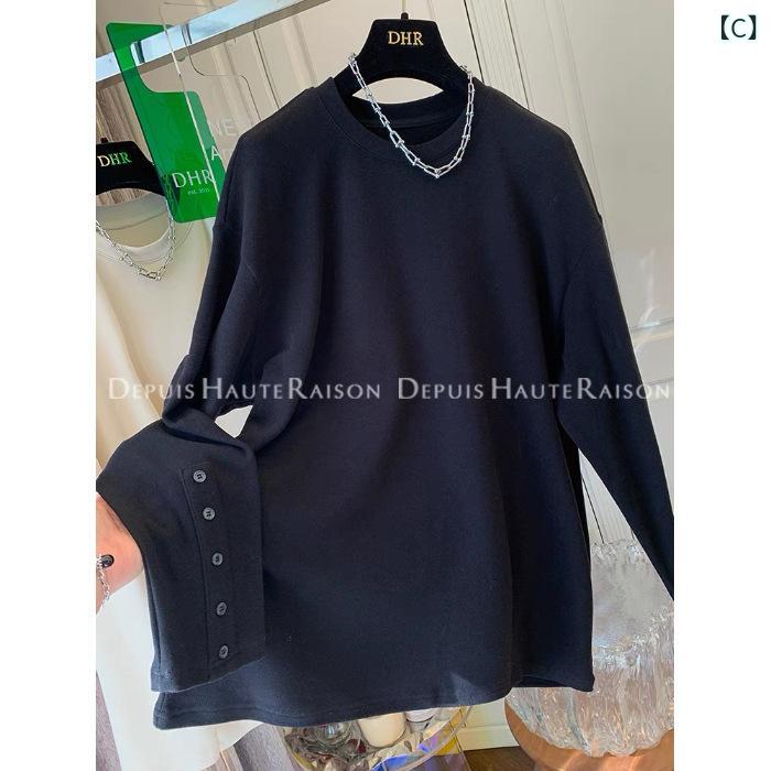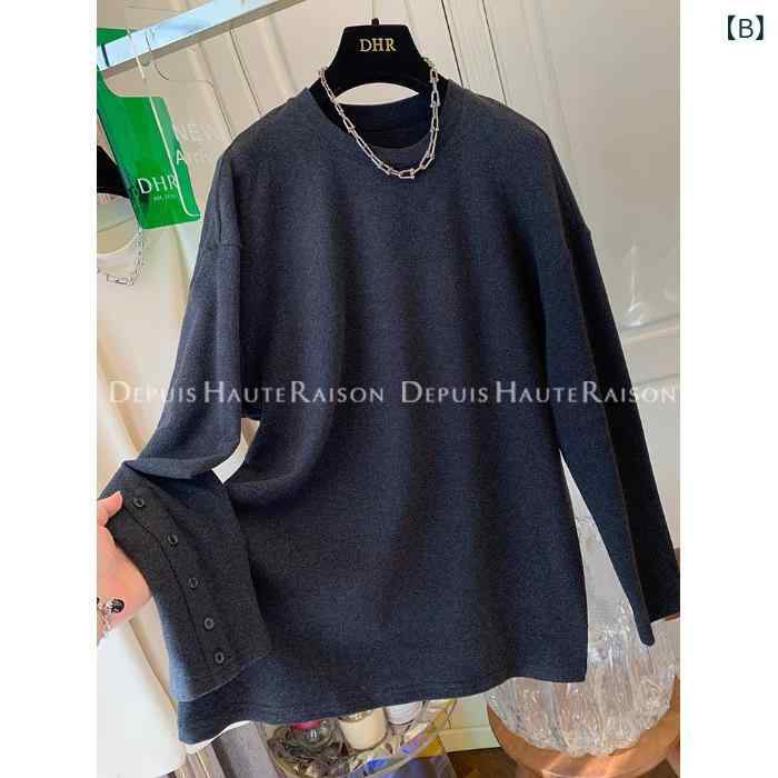 柔らかい モチモチの な 風の 丸 首の デコルテの 底の シャツ t シャツ 女子 学生の 秋冬 ゆったりしている 中に 大きいサイズ 上着を 掛けて りします。