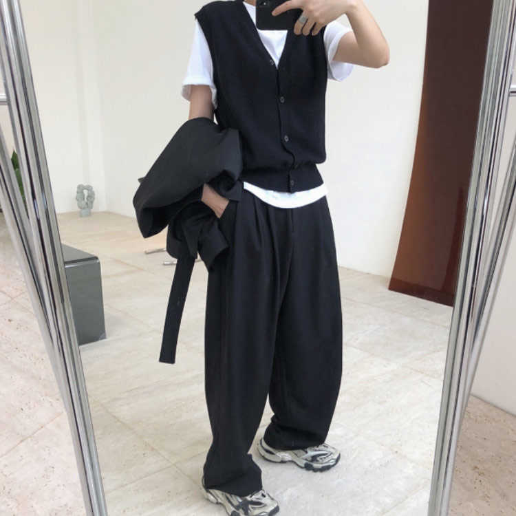 Vネックニットベスト♪上質のニット地を使用し、柔らかくて着心地良い♪デザインなので、インナーとしてもアウターとしても重宝♪通勤から通学までたくさんシーンご着用いただけます。