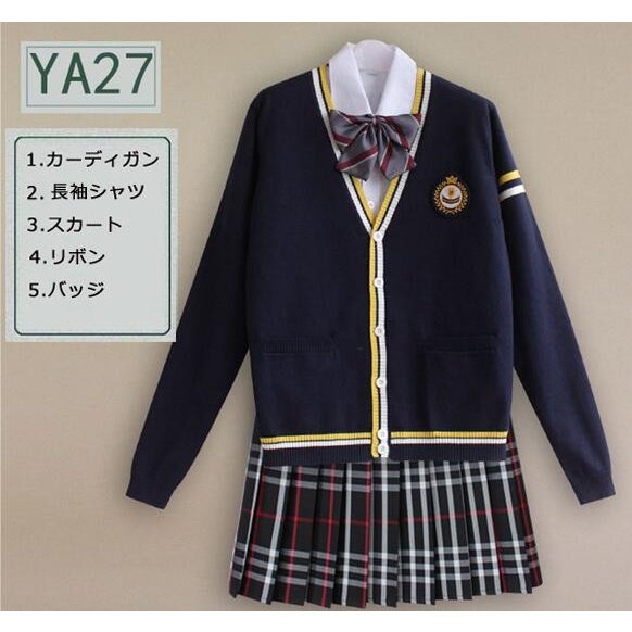 【セット内容】カーディガン+ブラウス+スカート+リボン/ネクタイ+バッジ