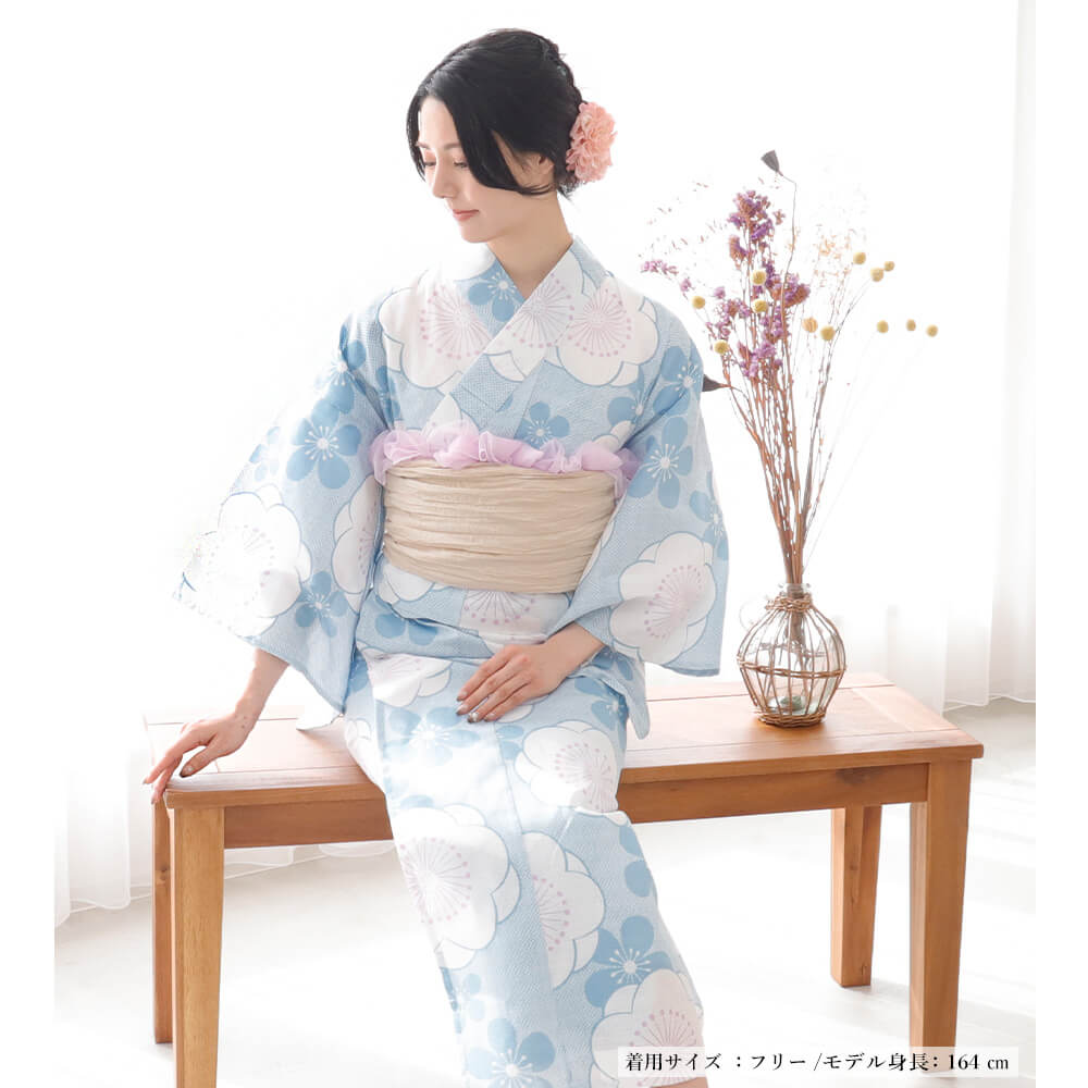 上下が別々になっており、下は巻きスカート状なのでサイズの幅も大きく 着崩れしにくいセパレート式の浴衣です。