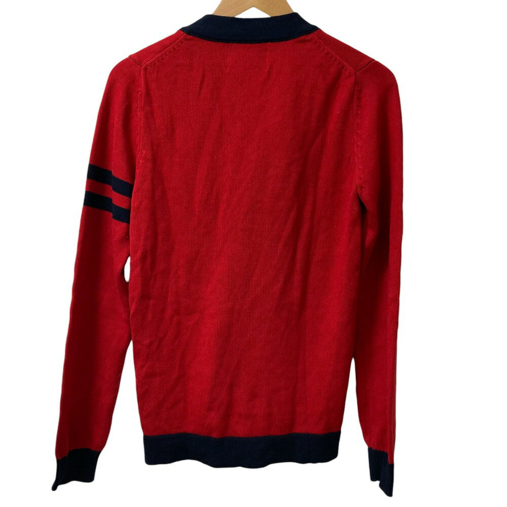 商品名 Deuxieme Classeドゥーズィエムクラス 金ボタン ニット カーディガン レッド ブランド Deuxieme Classe ドゥーズィエムクラス 対象 レディース コンディションランク ランク:A カラー レッド×ネイビー 表記サイズ 不明 実寸サイズ 身幅46cm、着丈64.5cm、肩幅32cm、袖丈64.5cm