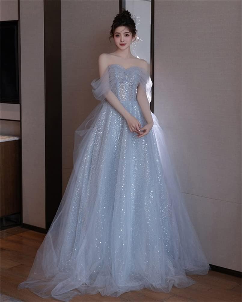 オフショルダーデザインと女性らしさあふれるシルエットのドレス。
