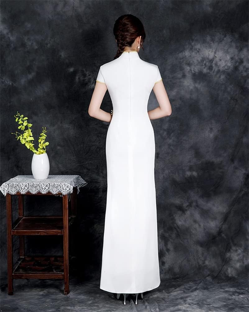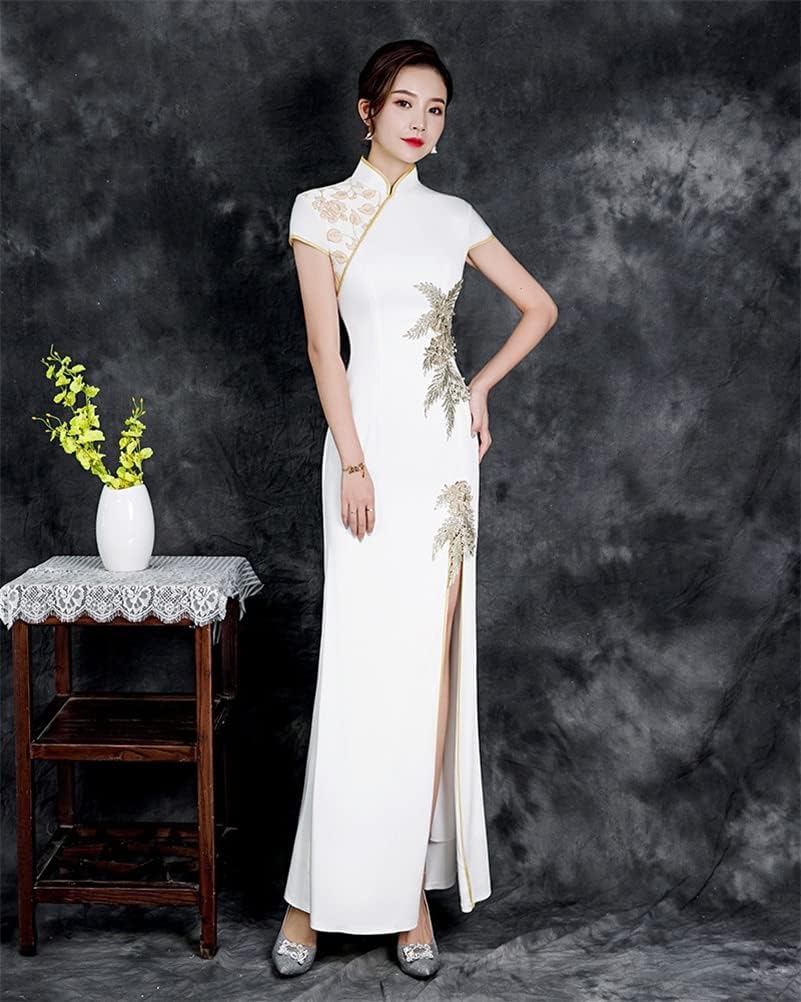 美しくデザインされた、この東洋のチャイナドレスは、あなたの高貴で優雅な気質を最大化するために、女性の首を変更するためのスリムフィットバージョンと中国の伝統的なスタンドアップカラーのデザインが施されています。