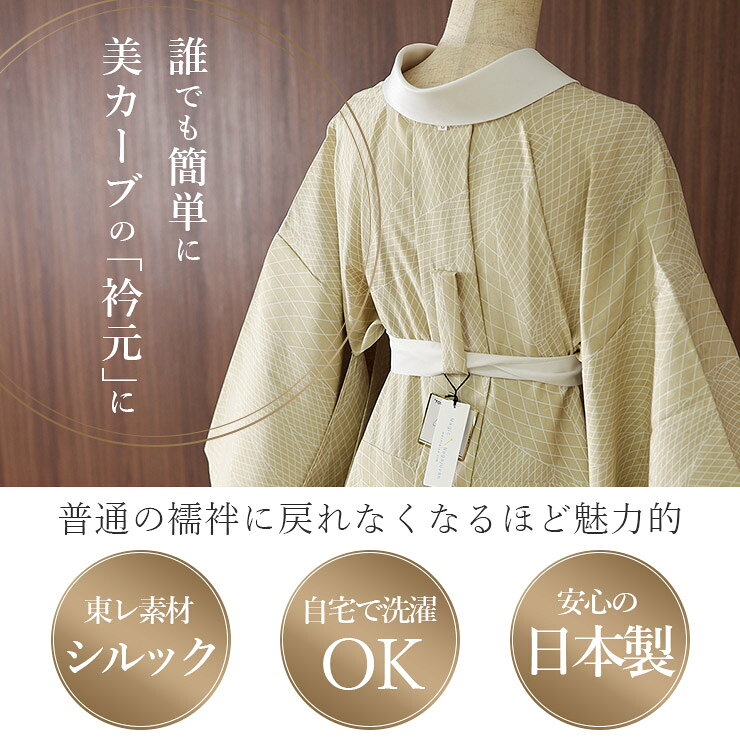 専用の半衿使用でシワにならず美しい仕上がり 専用の半衿が縫い付け済みですので、洗濯の際にも半衿は外さずそのままでOK! お好きな半衿を付けたい場合は、この専用半衿の上から掛けてください。