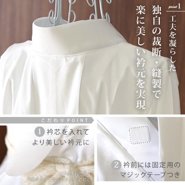 工夫を凝らした独自の裁断・縫製で仕上げ、楽に美しい衿合わせを実現。