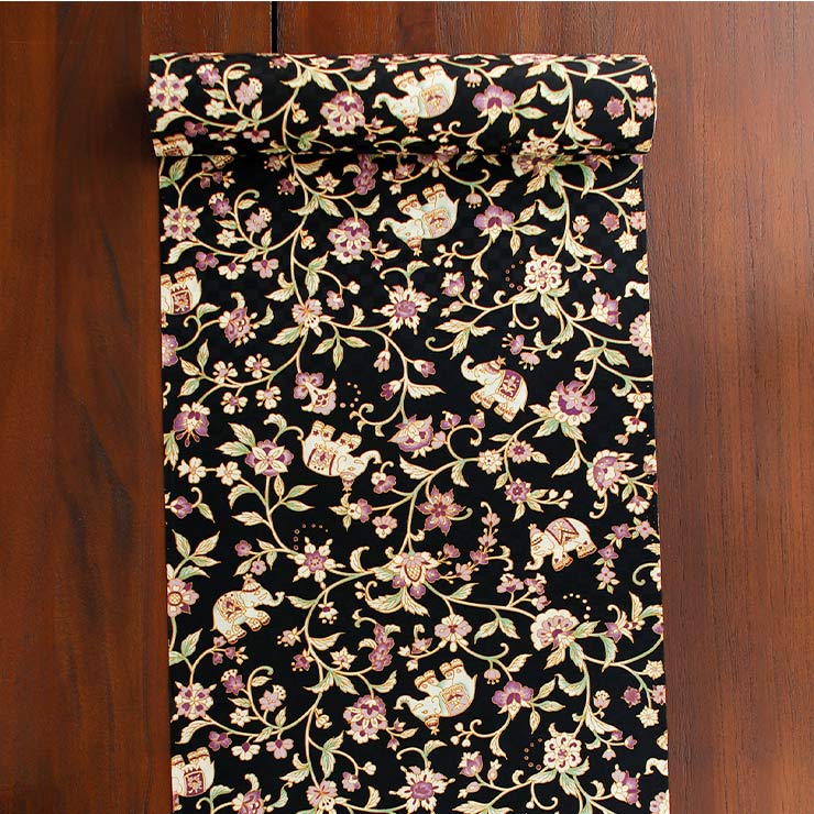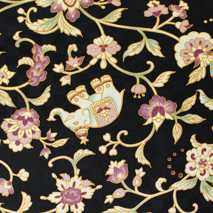 しっとりとしたブラックの地色に、華やかで楽しい更紗模様。
