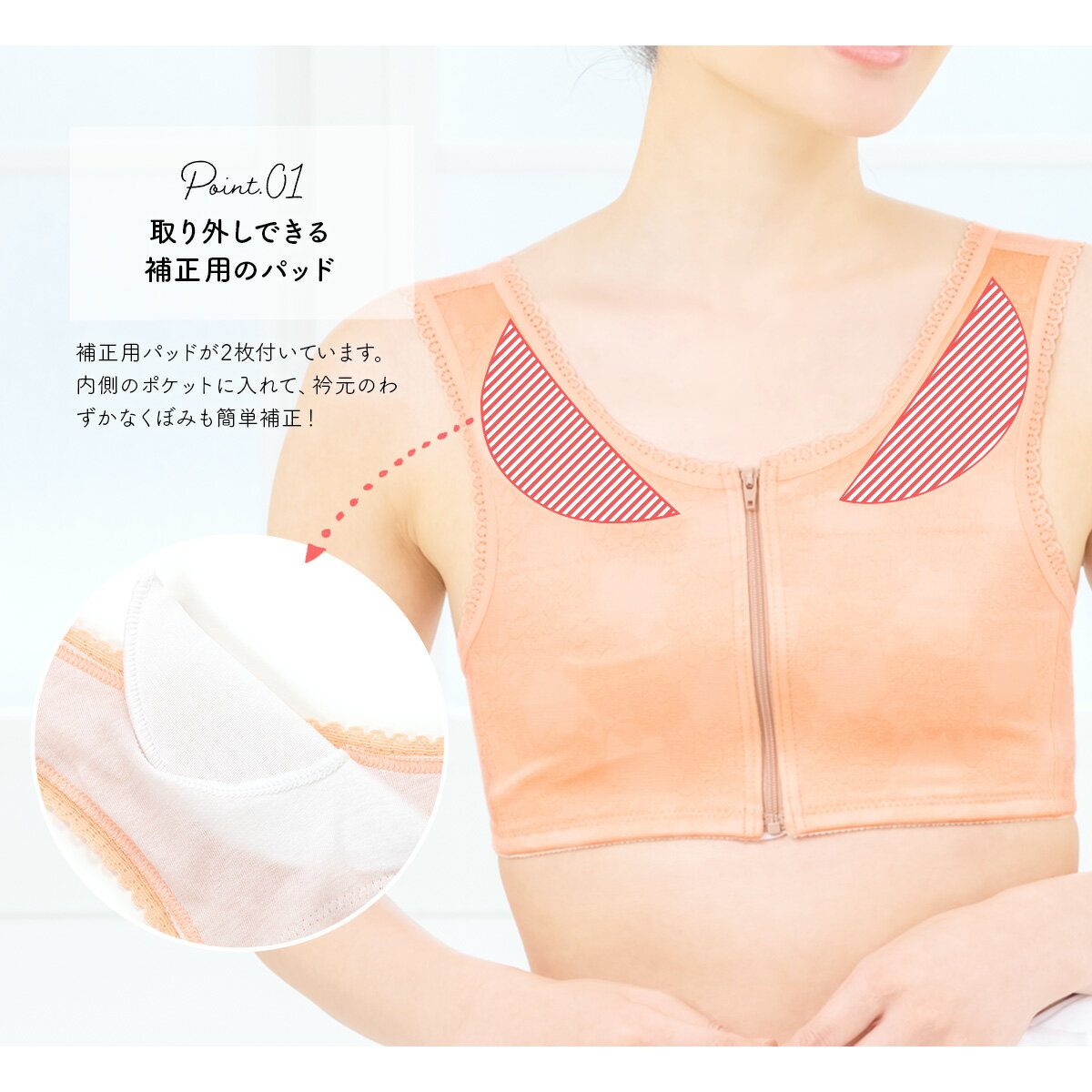 衿元のわずかなくぼみも取り外しのできる補正用のパッドが付いていて大変便利です。