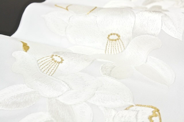 品良くエレガントなお色目の出来上がりは着物の邪魔をすることなく、刺繍の豪華な輝きが艶のある襟元を華やかに演出してくれる事でしょう。