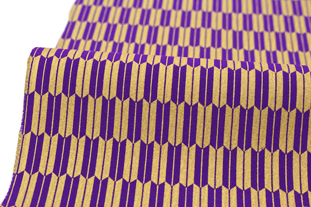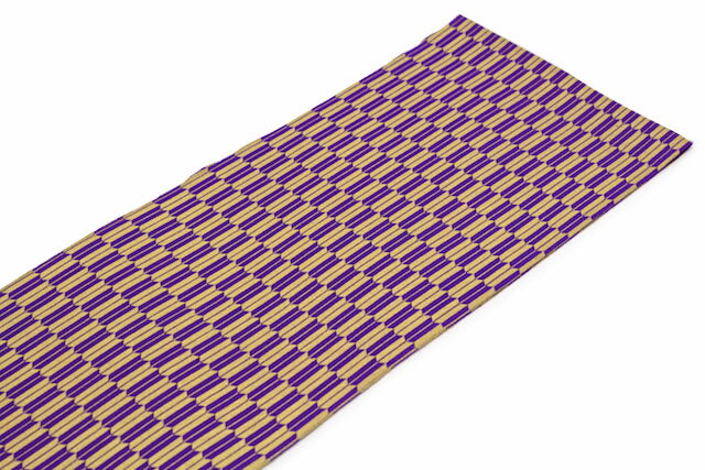 正絹(シルク100%)地に、金加工した総柄の矢羽がデザインされています。