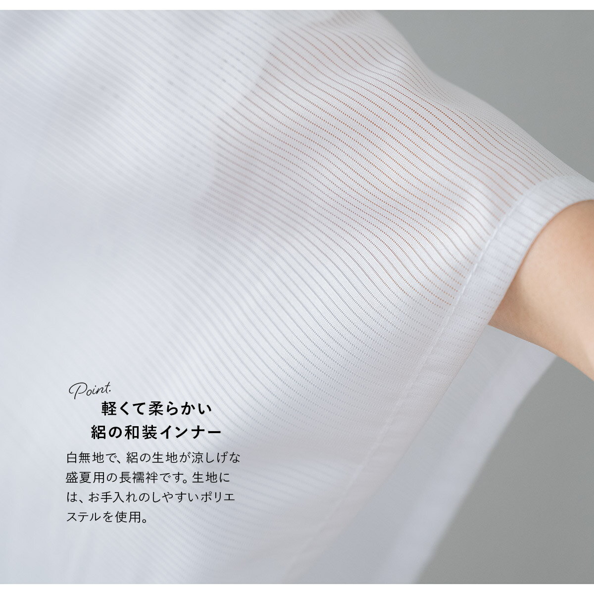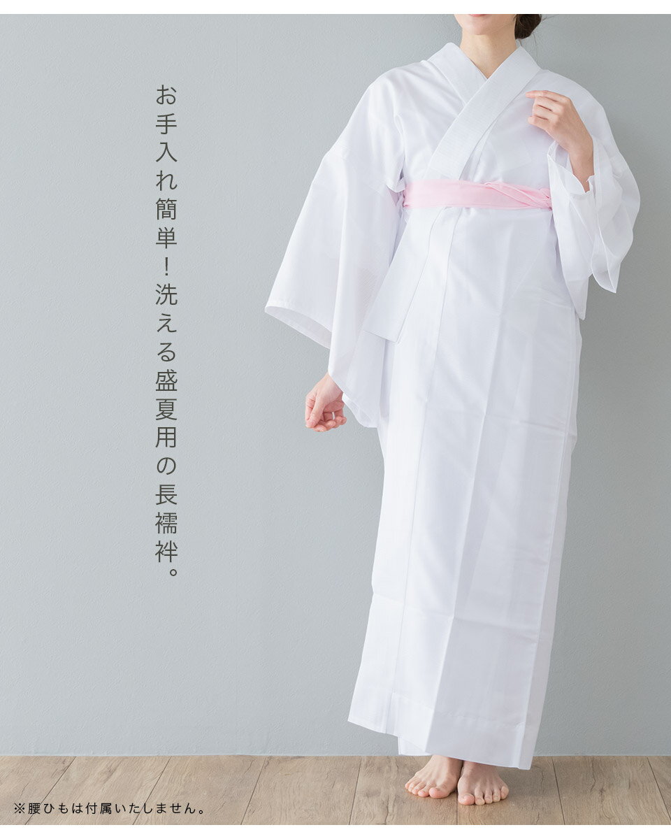 サイズ表size.身丈裄丈袖丈Mサイズ約130cm約65cm約49cmLサイズ約133cm約67cm約49cmお手入れ簡単なポリエステル素材の長襦袢女性用の和装インナーとして便利な盛夏用の長襦袢です。