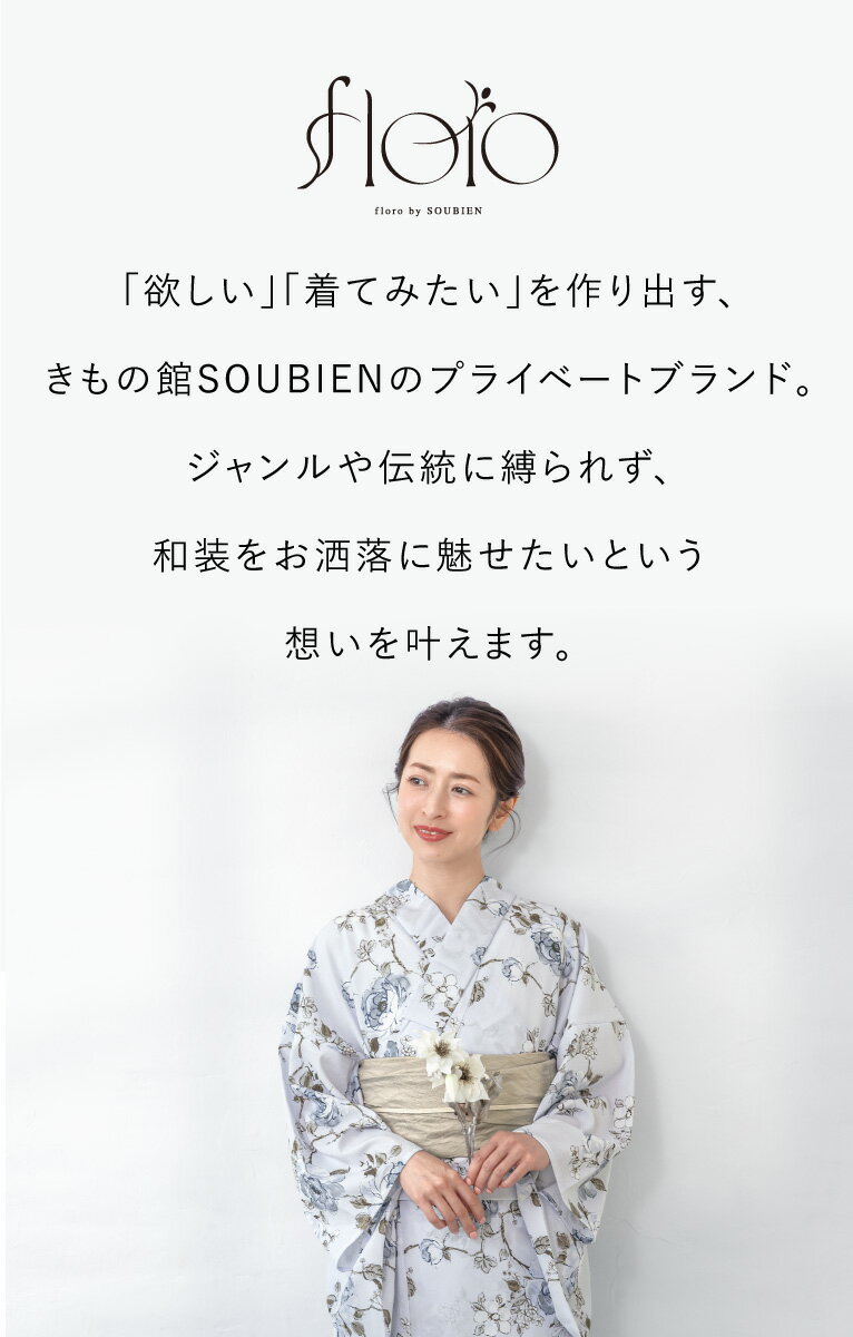 『floro by SOUBIEN』(フローロ)は、移りゆく和装トレンドの最先端を常に追い求め、「欲しい」「着てみたい」を作り出す、きもの館SOUBIENのプライベートブランドです。