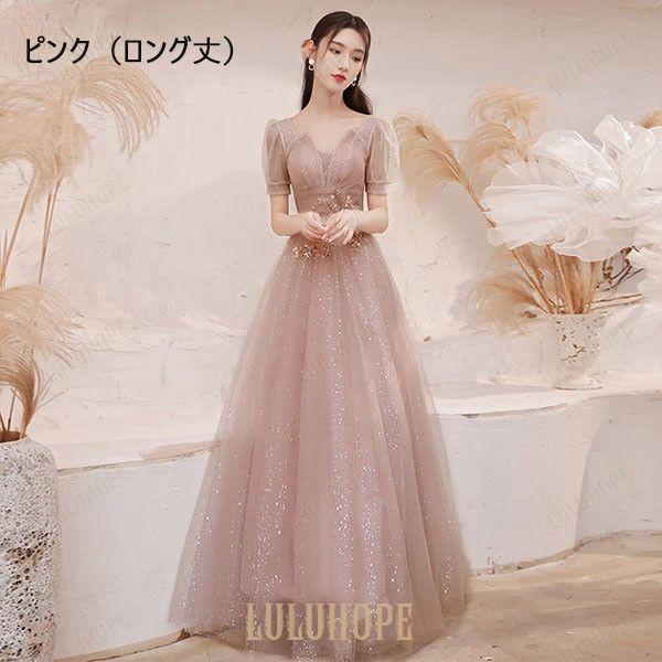 パーティードレス ロング丈 ミモレ丈 演奏会 半袖 キラキラ スクエアネック ドレス 大人 ピアノ 発表会 成人式 同窓会 結婚式 イブニングドレス Aライン 編み上