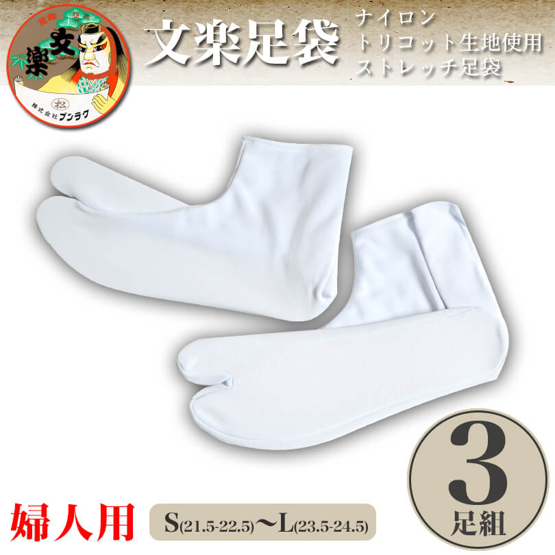 ◆足袋カバー 3枚組の紹介「文楽(ブンラク)」ブランドでおなじみ、熟練メーカーのストレッチの効いた足袋です。