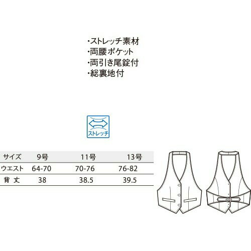同一シリーズ11135-99 イートンコート11235-99 イートンコート11131-99 ジャケット11204-99 ジャケット11226-99 ジャケット15117-99 カマーベスト15301-99 ベスト(衿無しV型)15302-99 ベスト(衿無し丸型)15303-99 ベスト(衿付き)12108-99 アジャスターパンツ(ノータック)12116-99 ノータックスラックス12204-99 スカート12206-99 ストレッチパンツ12226-99 スカート12231-99 ストレッチパンツ22303-99 パンツ(裾上げ機能付)|商品名|カマーベスト|メーカー|ボンユニ(BONUNI)|品番|15217-99|カラー|99.黒|サイズ|9号、11号、13号|素材|ストレッチトロピカル ポリエステル100%|機能|ストレッチ|ブランド|BON UNI|仕様|両腰ポケット、両引き尾錠付、総裏地付|商品説明|・伸縮性があり動きやすく作業効率があがる、生地が伸びる、しゃがむことが多い現場に最適です。